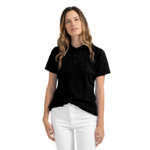 6.7 oz., 50% cotton/50% polyester Pique textured knit Contoured welt collar and cuffs Double needle bottom hem Three buttons Women's fit Side-seamed construction Tear Anywhere label USMCA certified