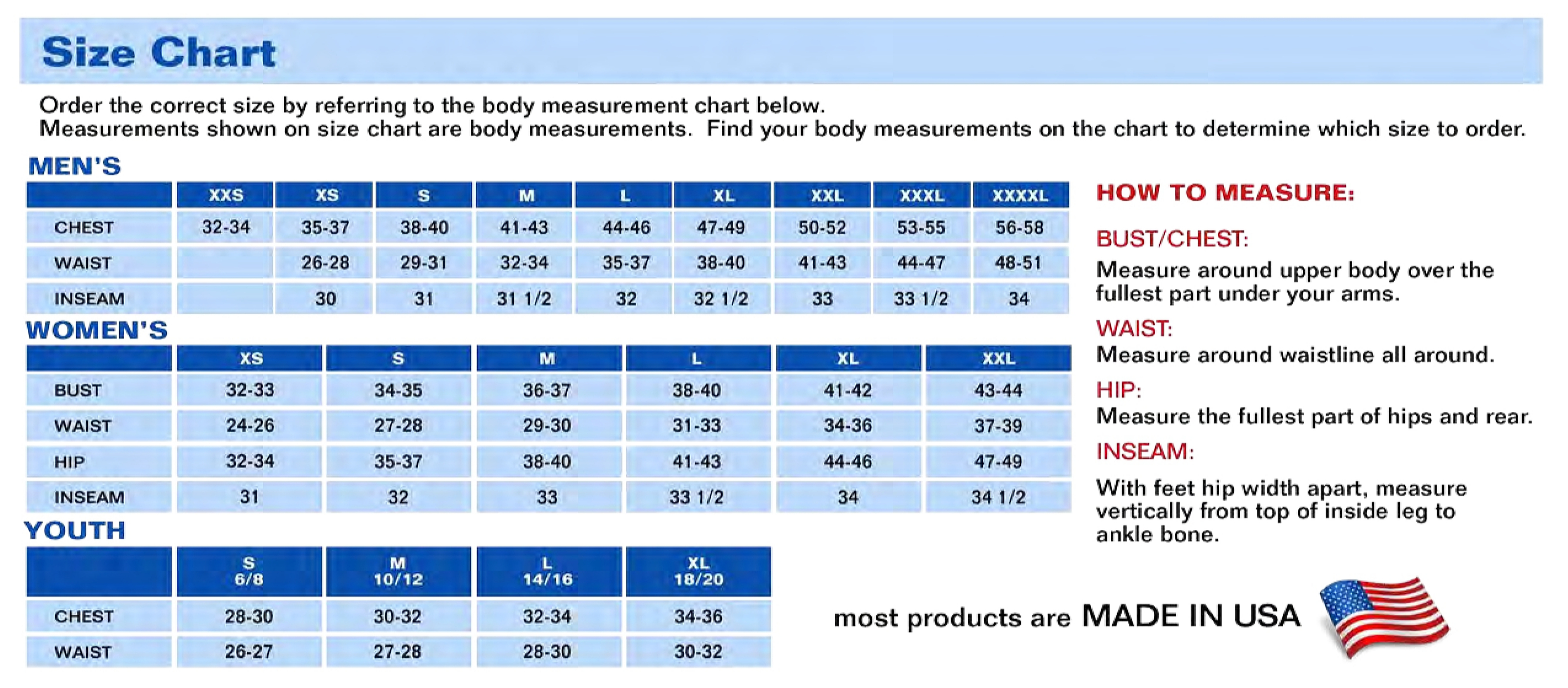 Chest 32-33 34-35 36-37 38-40 41-42 43-44